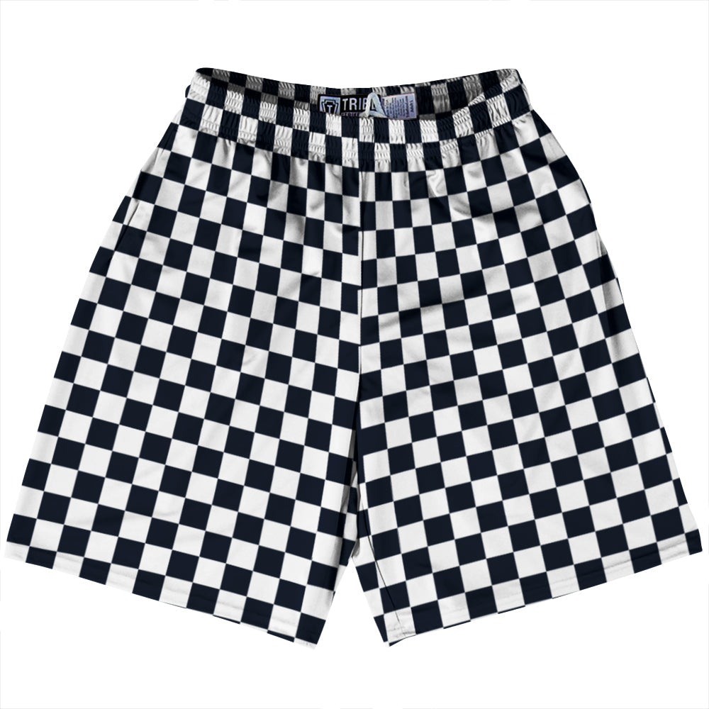 - Checkerboard 1 Inch Blue Navy Almost Black and White Lacrosse Shorts Made In USA