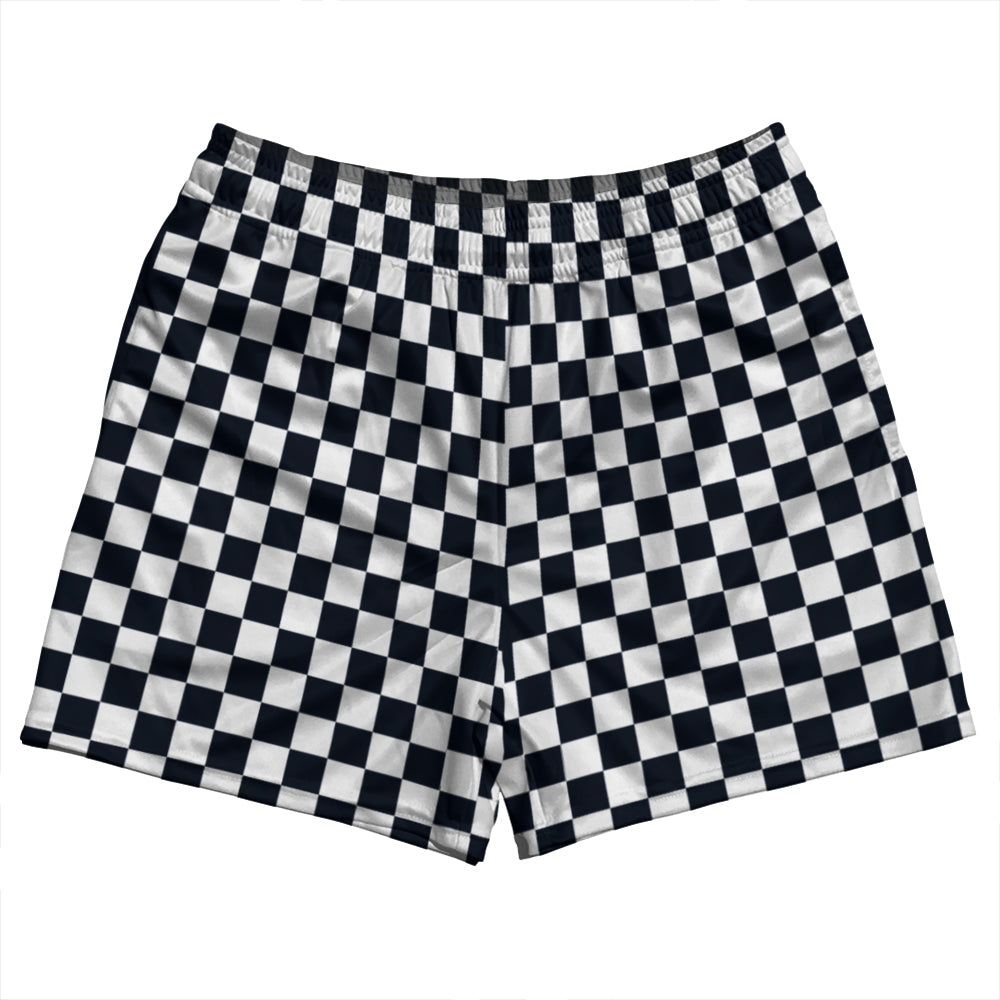 - Checkerboard 1 Inch Blue Navy Almost Black and White Rugby Shorts Made In USA