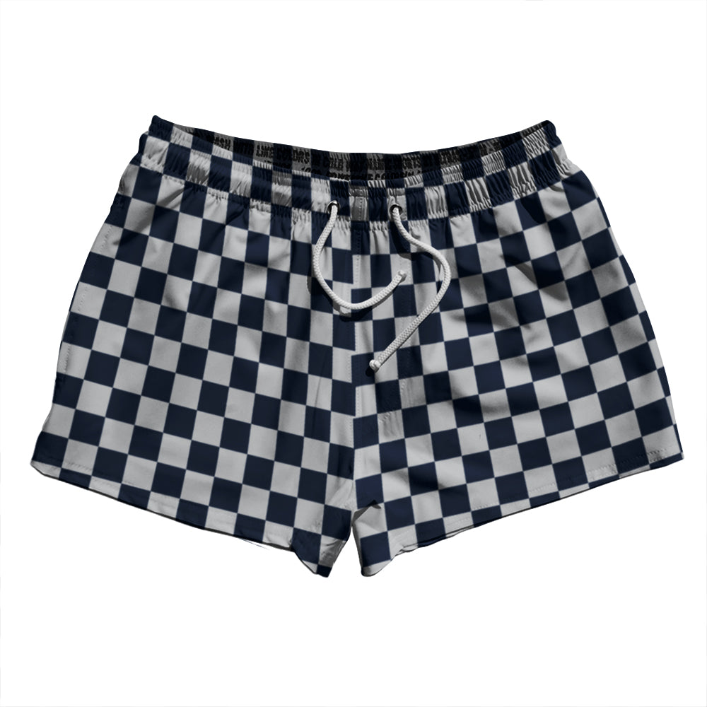 Checkerboard 1 Inch Blue Navy And Grey Medium 2.5" Swim Shorts Made in USA