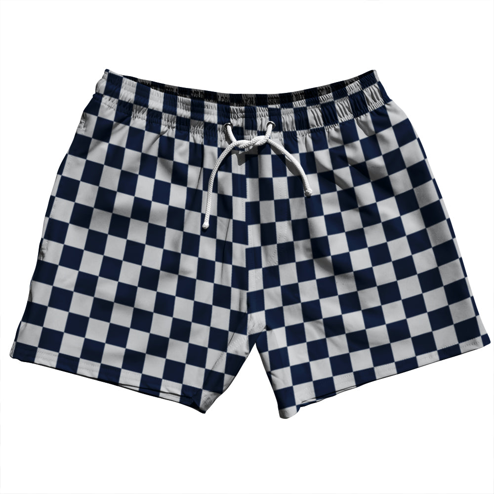 Checkerboard 1 Inch Blue Navy And Grey Medium 5" Swim Shorts Made in USA