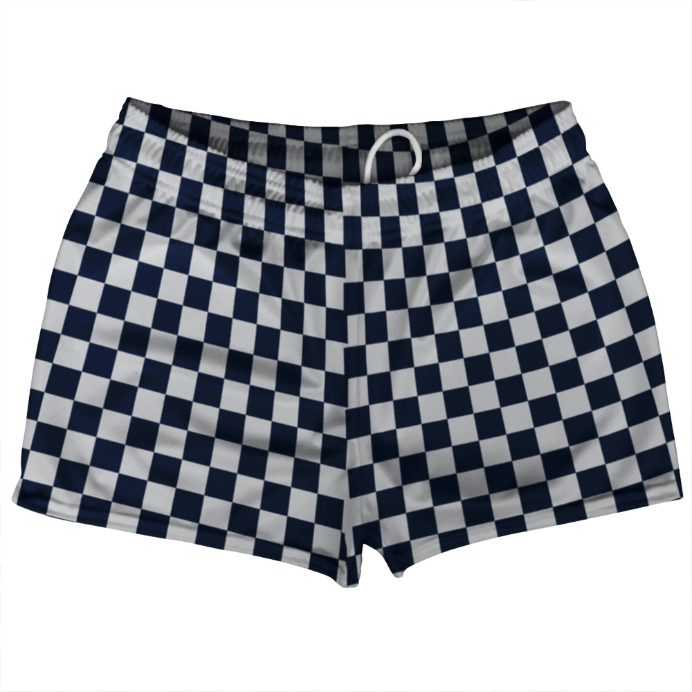 - Checkerboard 1 Inch Blue Navy And Grey Medium Shorty Short Gym Shorts 2.5" Inseam Made In USA