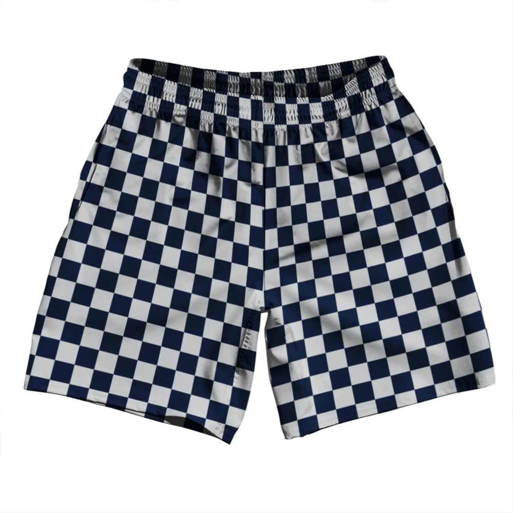 - Checkerboard 1 Inch Blue Navy And Grey Medium Soccer Shorts Made In USA