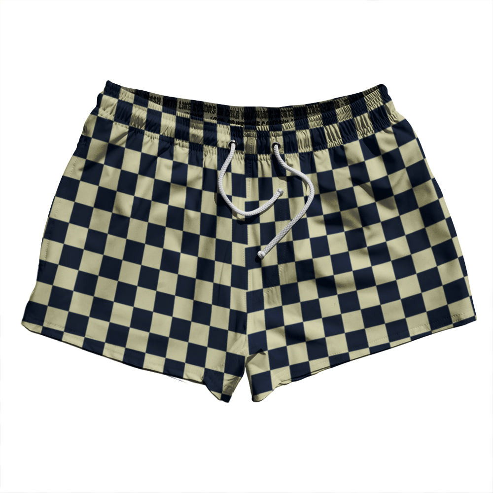 Checkerboard 1 Inch Blue Navy and Vegas Gold 2.5" Swim Shorts Made in USA