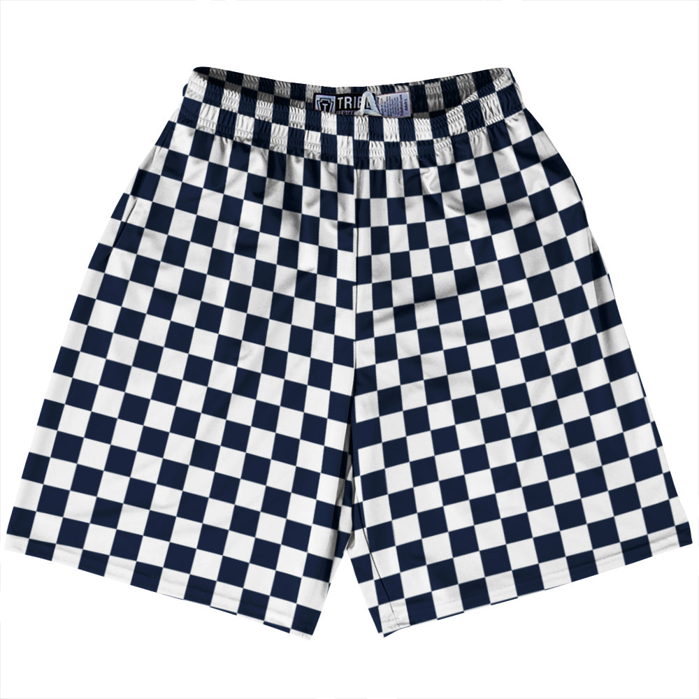 - Checkerboard 1 Inch Blue Navy and White Lacrosse Shorts Made In USA