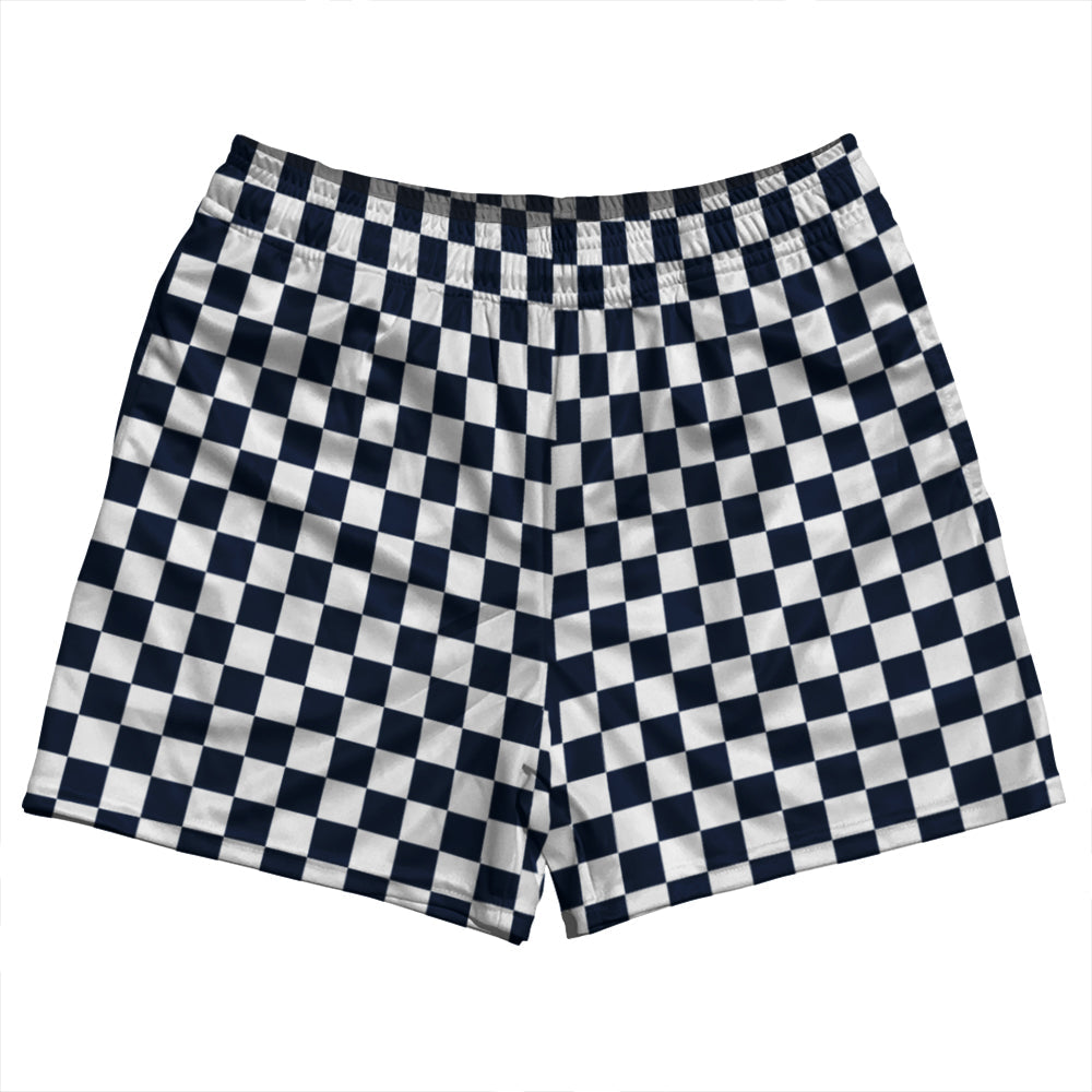 - Checkerboard 1 Inch Blue Navy and White Rugby Shorts Made In USA