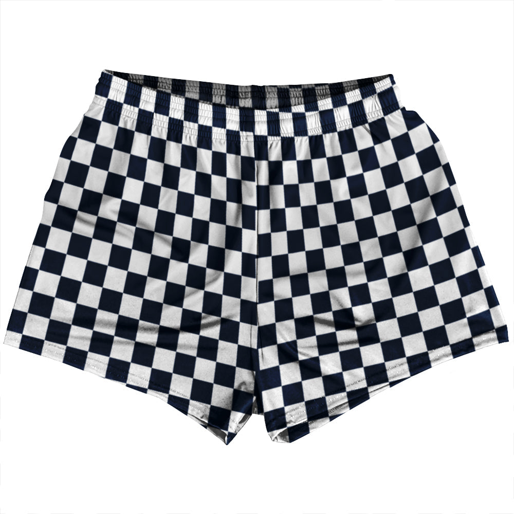 Checkerboard 1 Inch Blue Navy and White Womens & Girls Sport Shorts End Made In USA