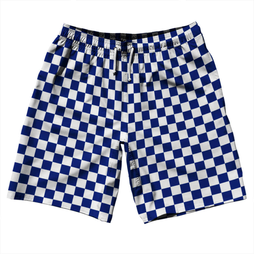 - Checkerboard 1 Inch Blue Royal and White 10" Swim Shorts Made in USA