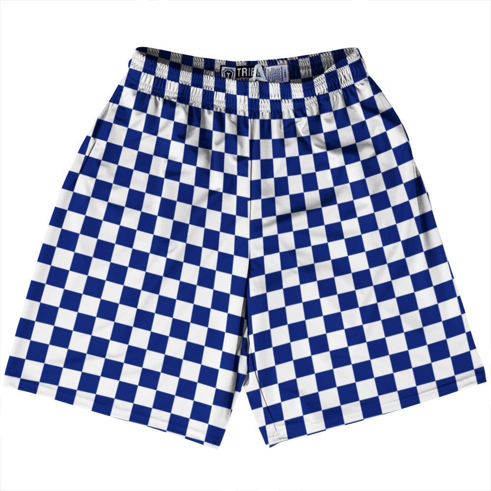- Checkerboard 1 Inch Blue Royal and White Lacrosse Shorts Made In USA