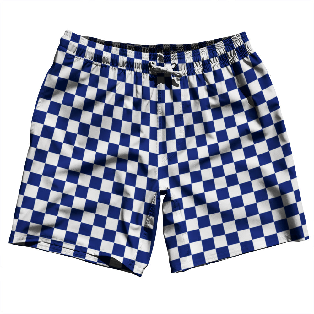 - Checkerboard 1 Inch Blue Royal and White Swim Shorts 7" Made in USA