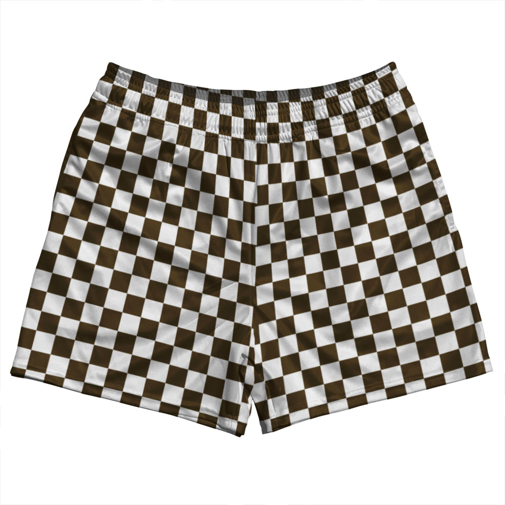 - Checkerboard 1 Inch Brown Dark and White Rugby Shorts Made In USA