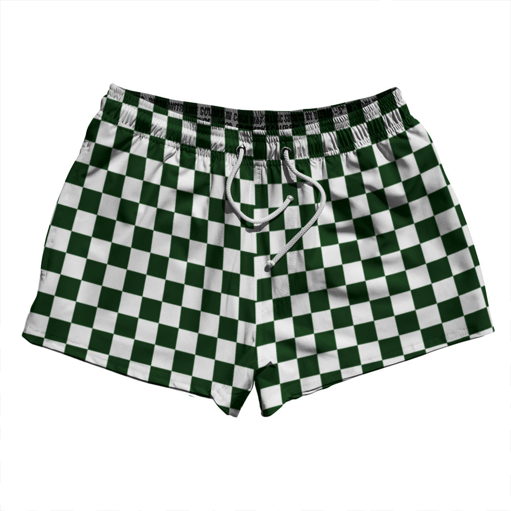 Checkerboard 1 Inch Green Forest and White 2.5" Swim Shorts Made in USA