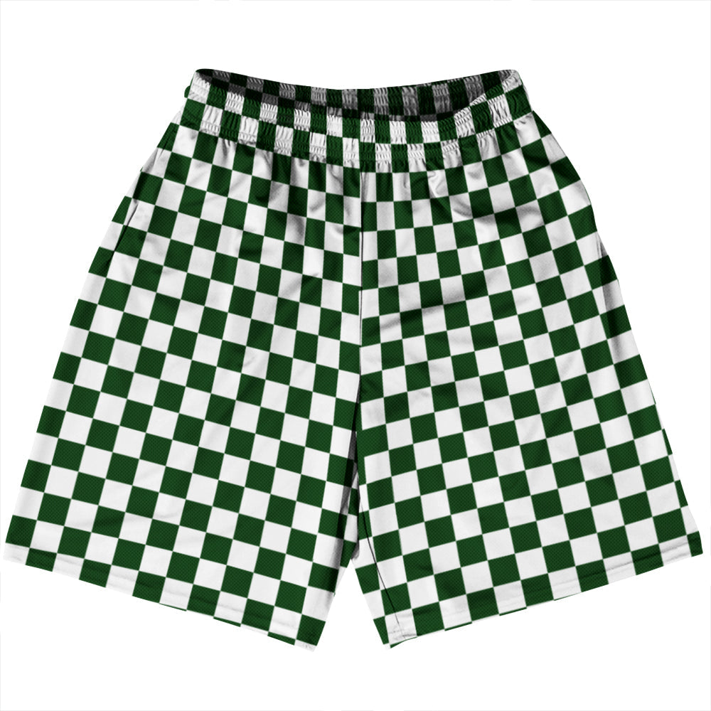 Checkerboard 1 Inch Green Forest and White Basketball Practice Shorts Made In USA