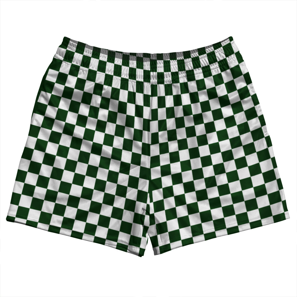 Checkerboard 1 Inch Green Forest and White Rugby Shorts Made In USA