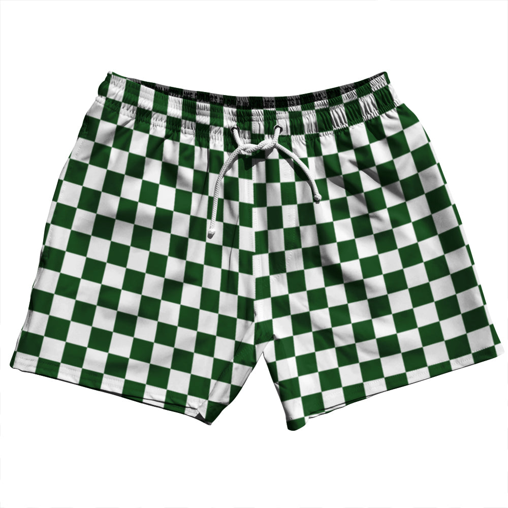 - Checkerboard 1 Inch Green Hunter and White 5" Swim Shorts Made in USA