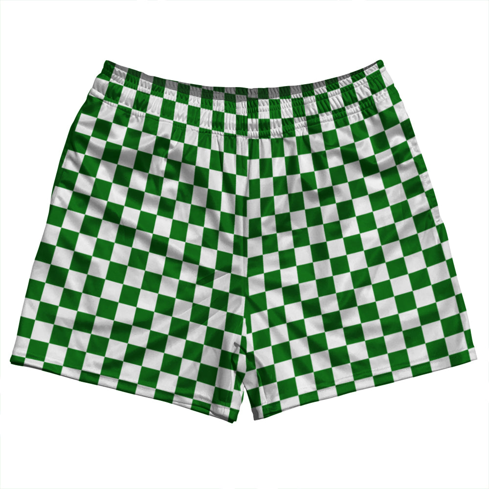 - Checkerboard 1 Inch Green Kelly and White Rugby Shorts Made In USA