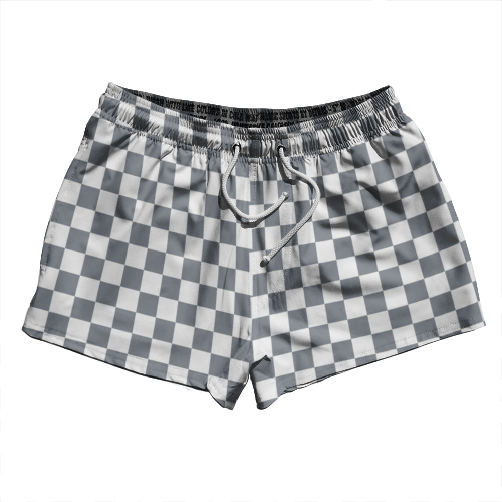 Checkerboard 1 Inch Grey Dark and White 2.5" Swim Shorts Made in USA