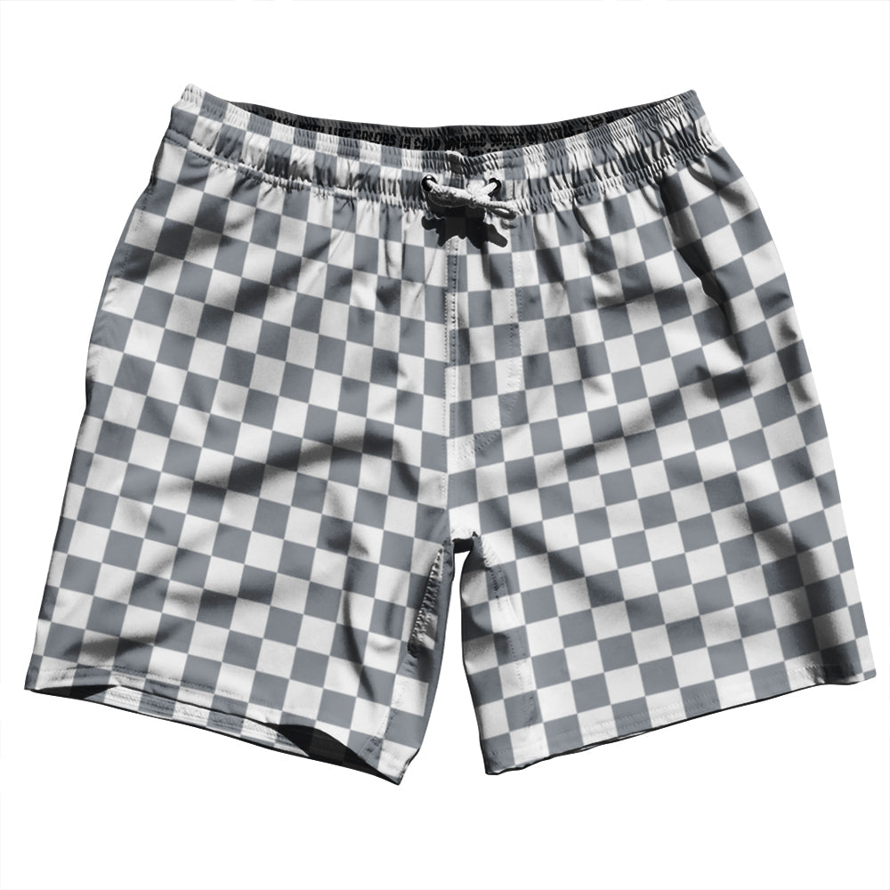 - Checkerboard 1 Inch Grey Dark and White Swim Shorts 7" Made in USA