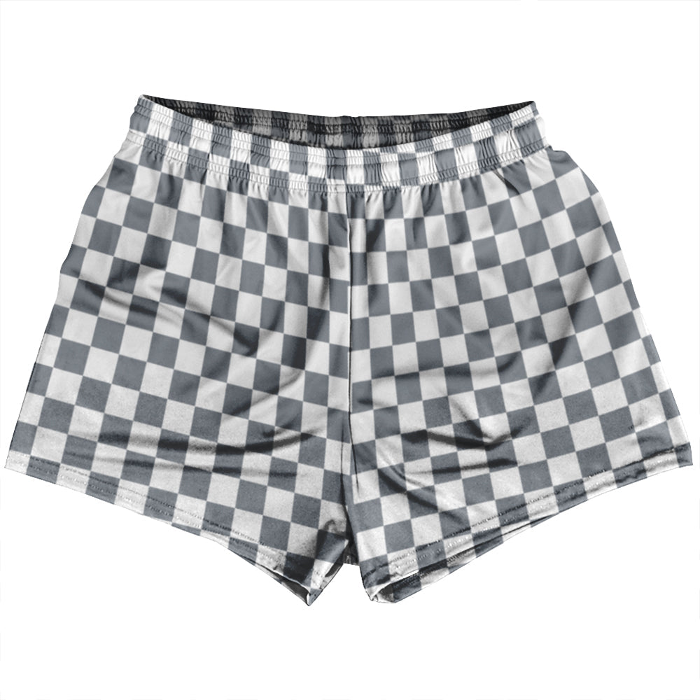 Checkerboard 1 Inch Grey Dark and White Womens & Girls Sport Shorts End Made In USA