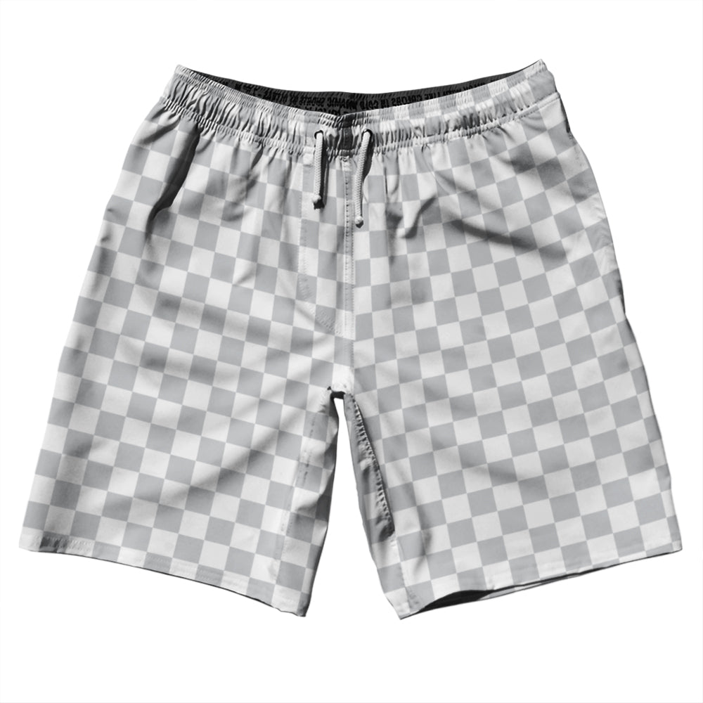 - Checkerboard 1 Inch Grey Medium and White 10" Swim Shorts Made in USA