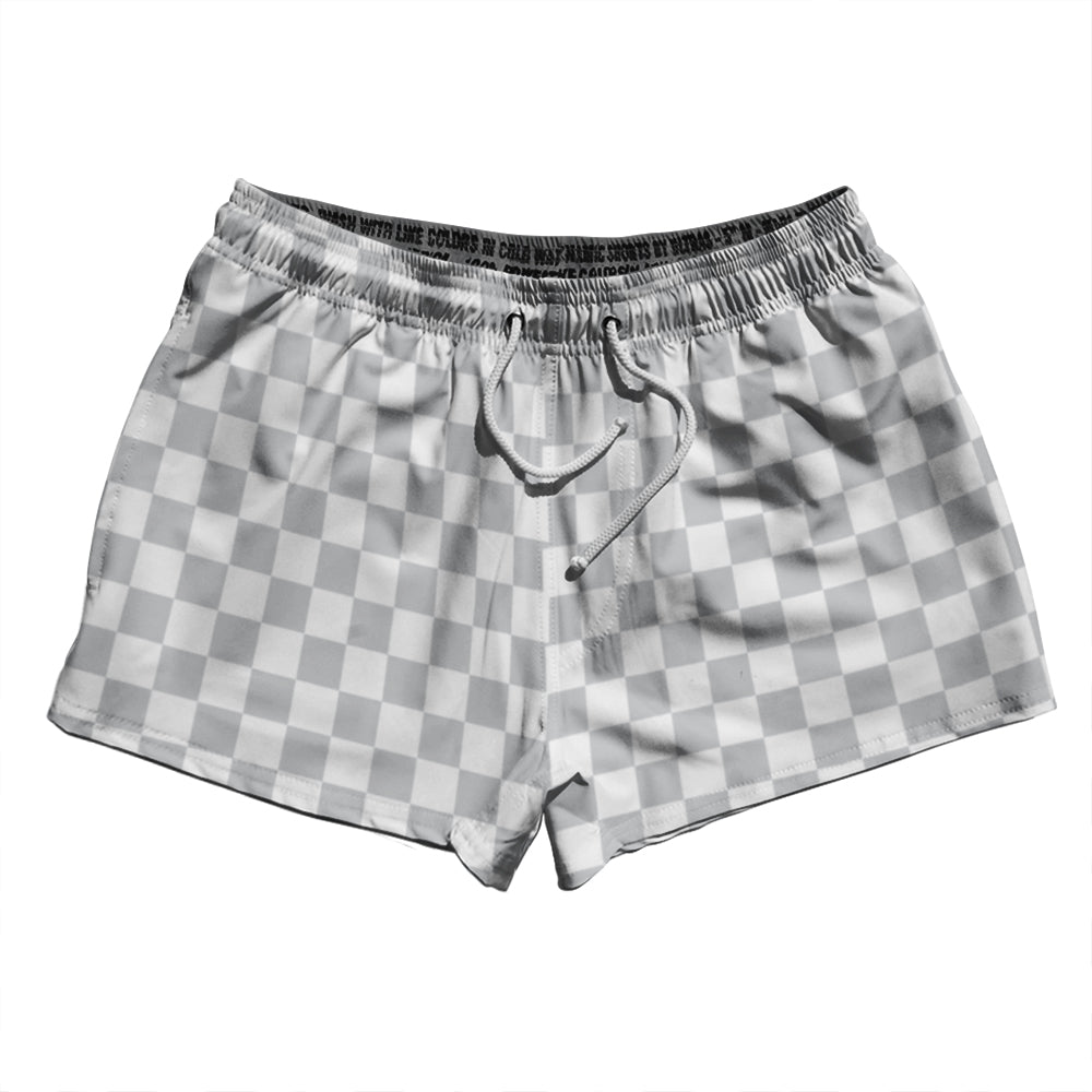 Checkerboard 1 Inch Grey Medium and White 2.5" Swim Shorts Made in USA