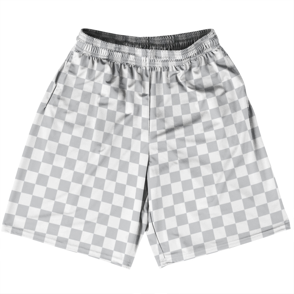 • Checkerboard 1 Inch Grey Medium and White Basketball Practice Shorts Made In USA