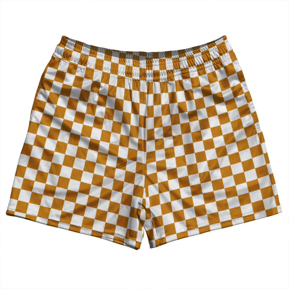 - Checkerboard 1 Inch Orange Burnt and White Rugby Shorts Made In USA
