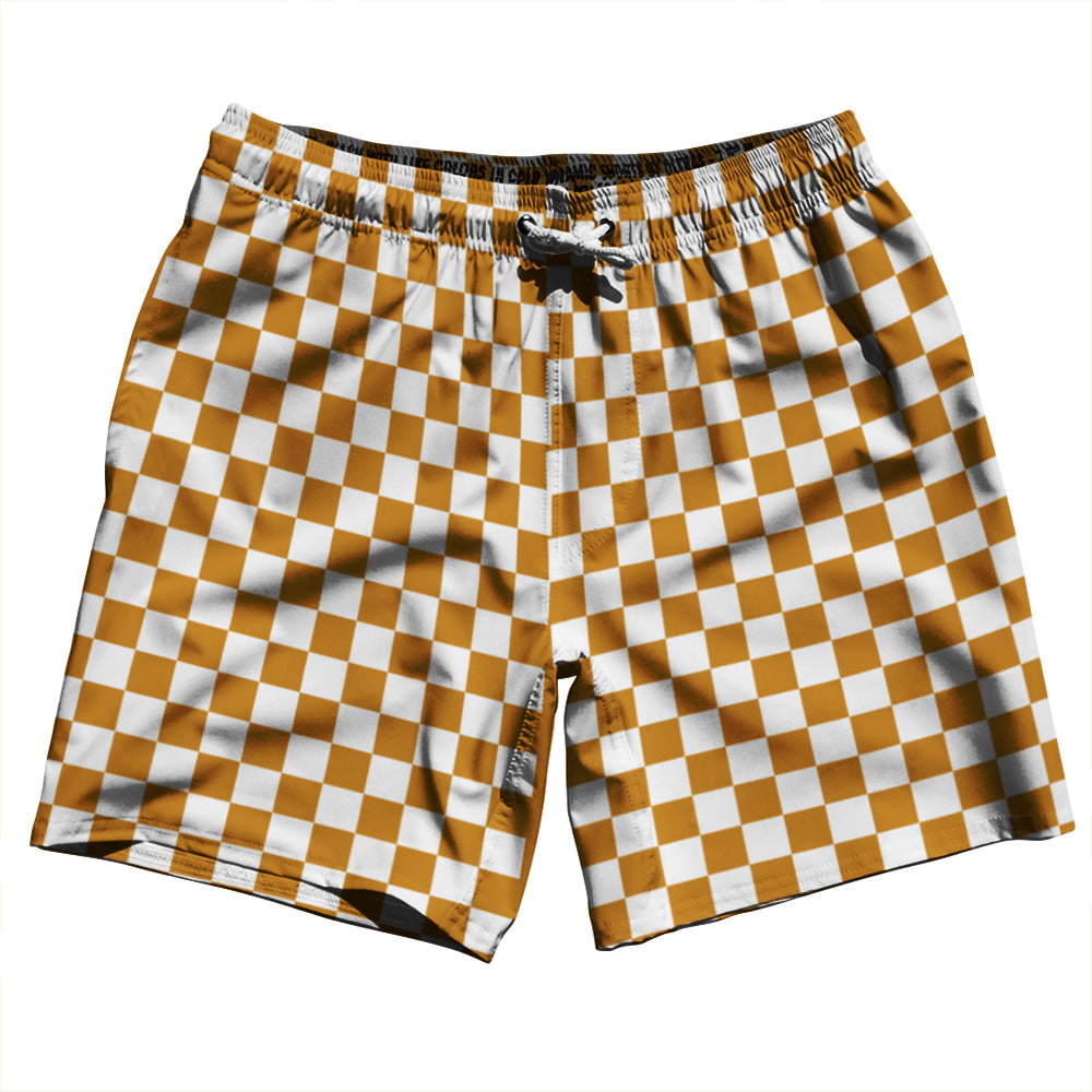 Checkerboard 1 Inch Orange Burnt and White Swim Shorts 7" Made in USA
