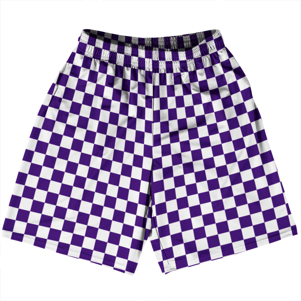 Checkerboard 1 Inch Purple Lakers and White Basketball Practice Shorts Made In USA