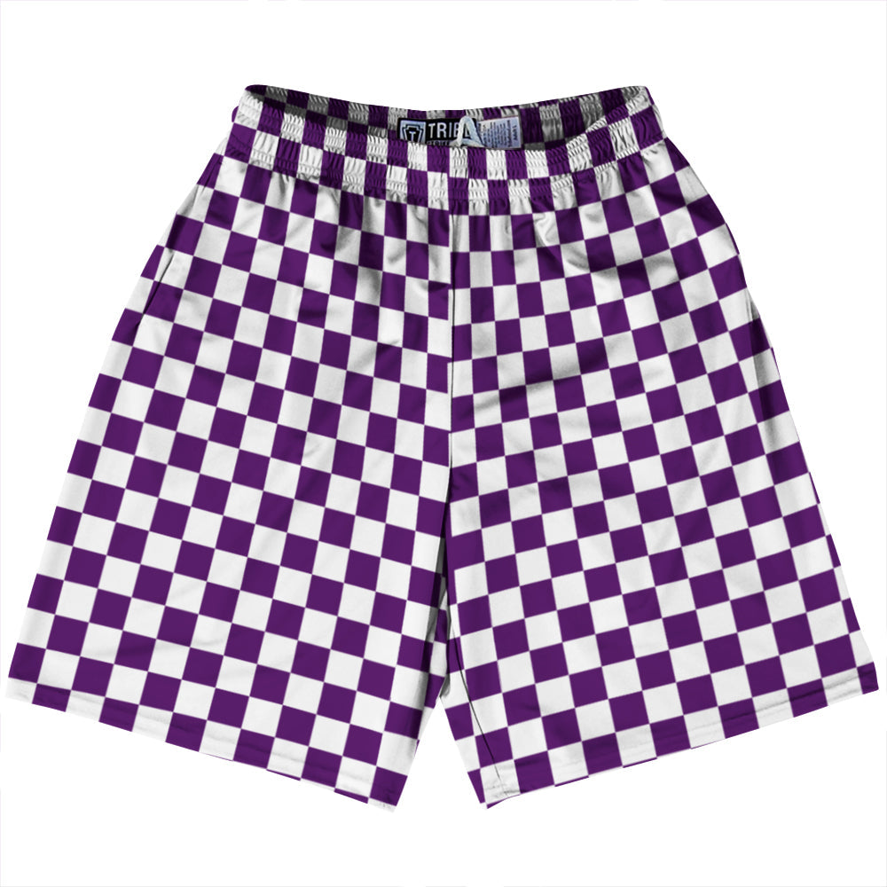 - Checkerboard 1 Inch Purple Medium and White Lacrosse Shorts Made In USA