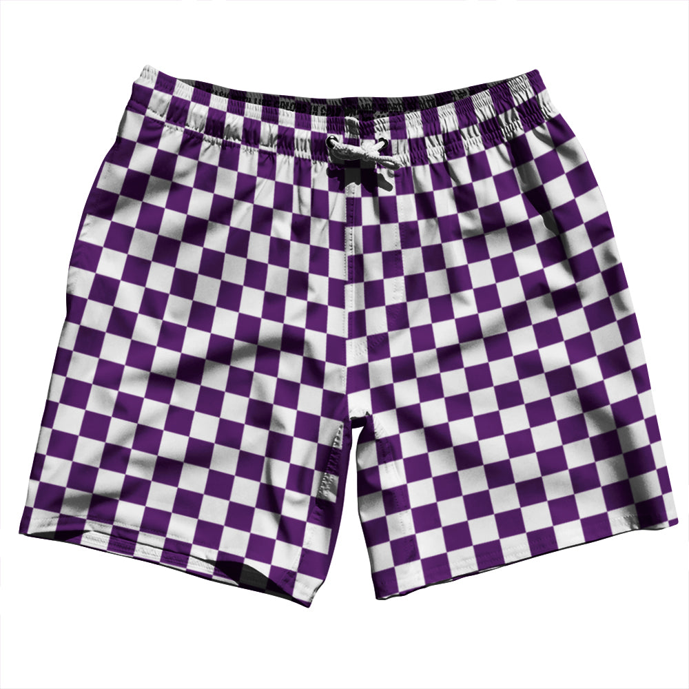 - Checkerboard 1 Inch Purple Medium and White Swim Shorts 7" Made in USA