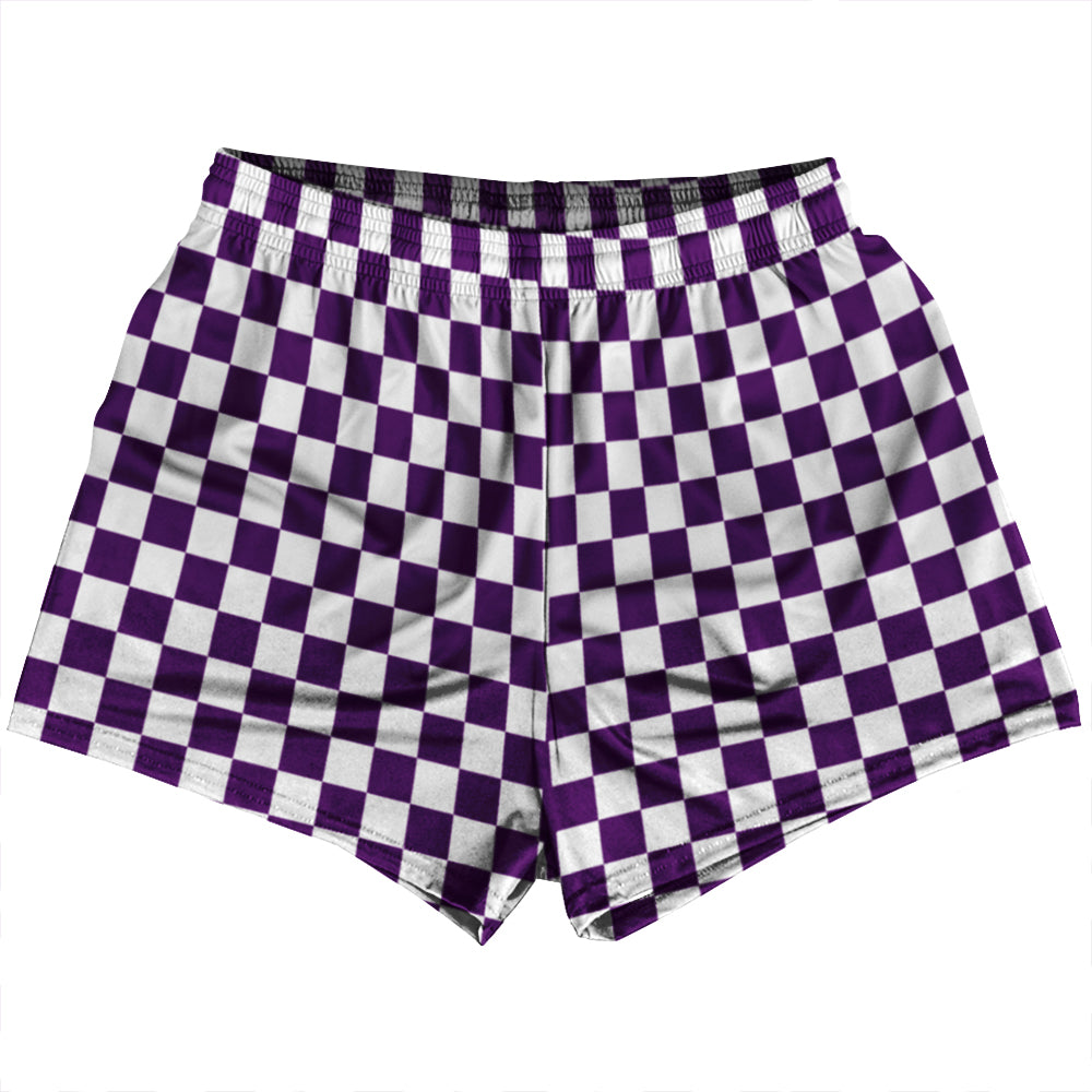 Checkerboard 1 Inch Purple Medium and White Womens & Girls Sport Shorts End Made In USA