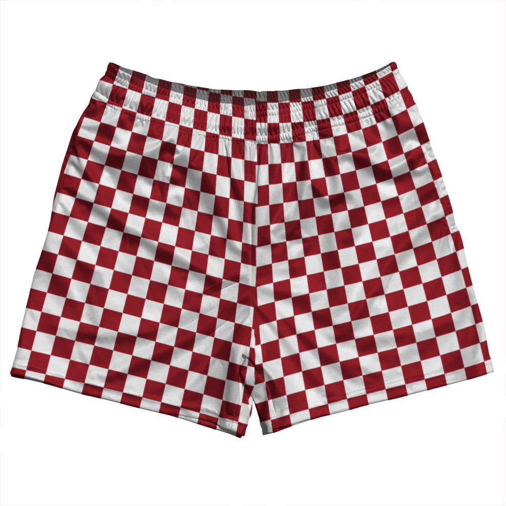 - Checkerboard 1 Inch Red Cardinal and White Rugby Shorts Made In USA