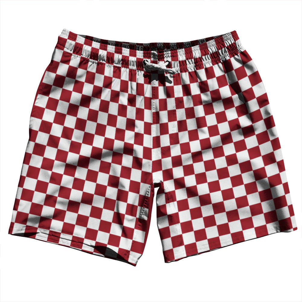 - Checkerboard 1 Inch Red Cardinal and White Swim Shorts 7" Made in USA