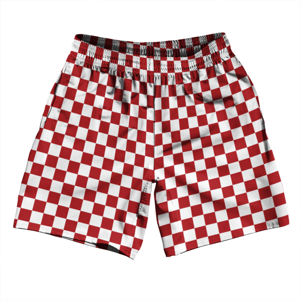 Checkerboard 1 Inch Red Dark and White Athletic Running Fitness Exercise Shorts 7" Inseam Shorts Made In USA