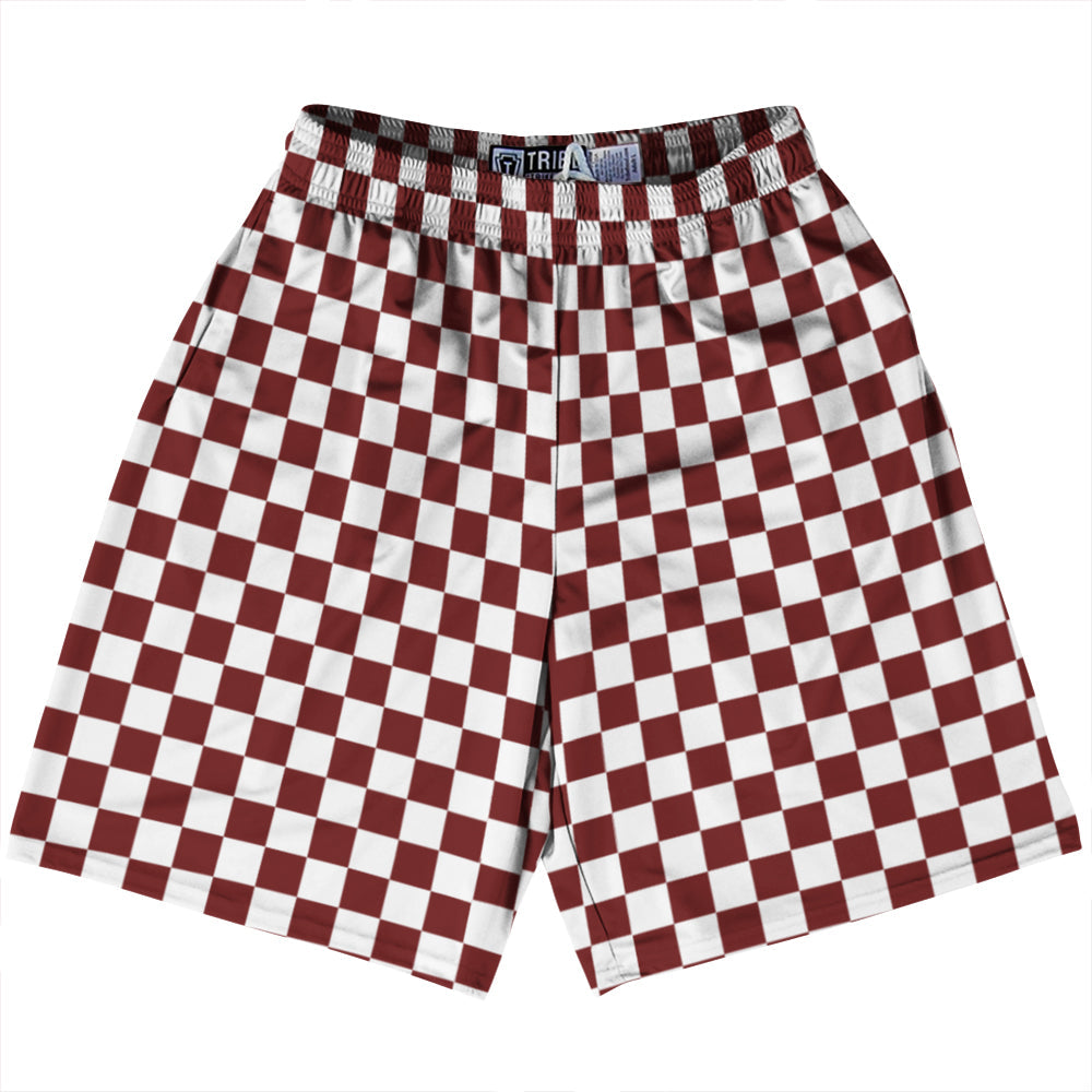 - Checkerboard 1 Inch Red Maroon and White Lacrosse Shorts Made In USA