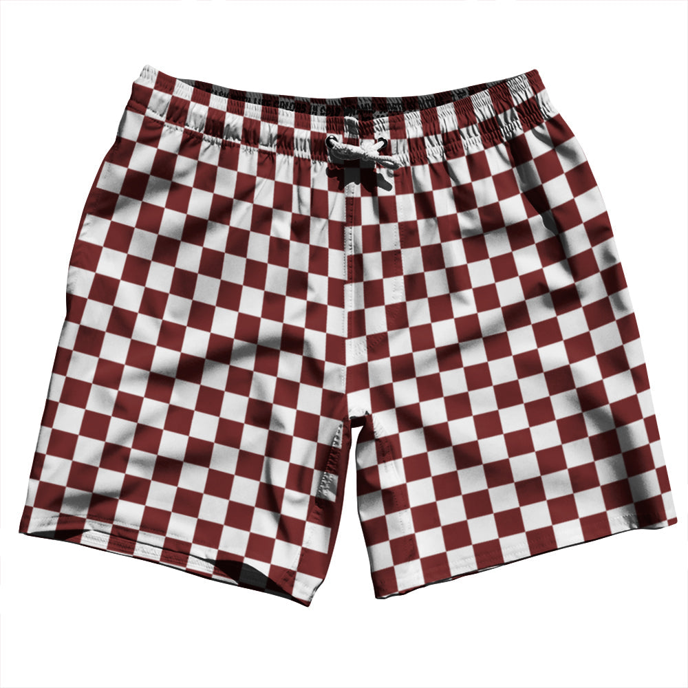 - Checkerboard 1 Inch Red Maroon and White Swim Shorts 7" Made in USA
