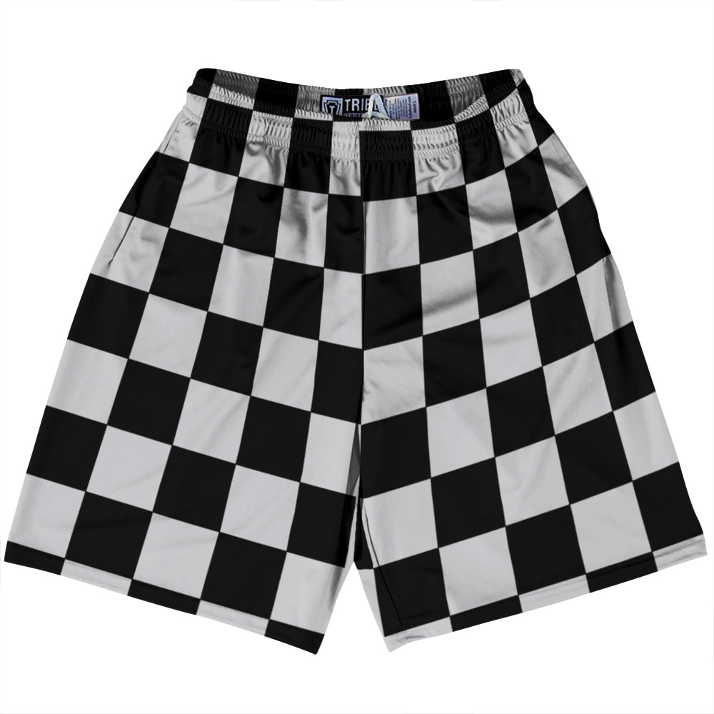 - Checkerboard 2.5 Inches Black and Grey Medium Lacrosse Shorts Made In USA