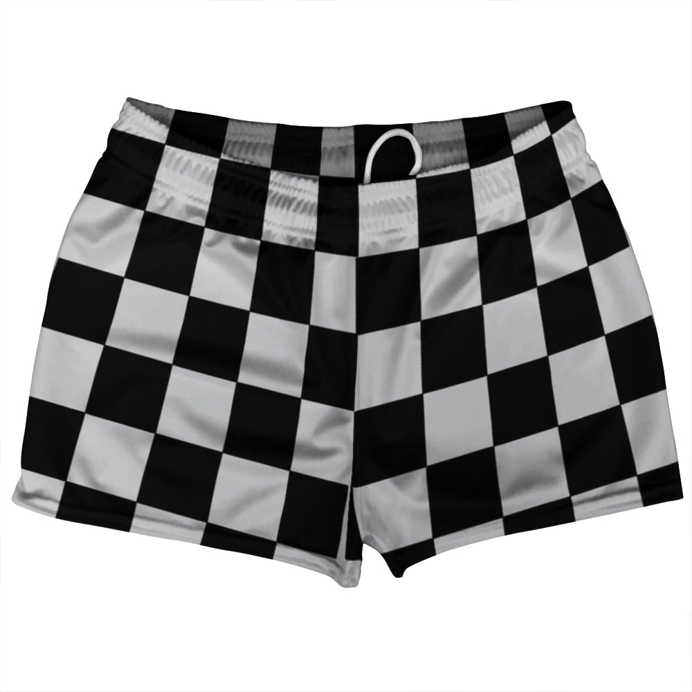 • Checkerboard 2.5 Inches Black and Grey Medium Shorty Short Gym Shorts 2.5" Inseam Made In USA