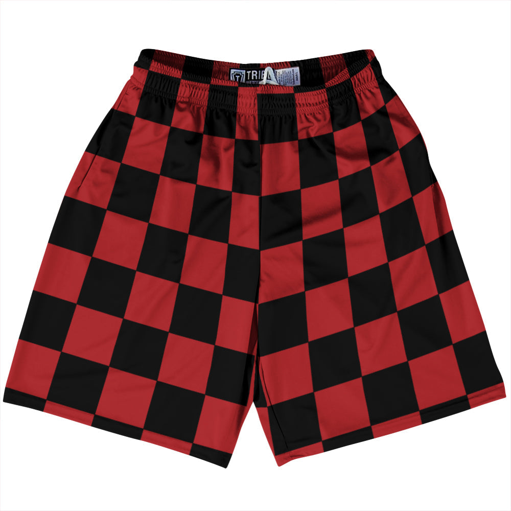 • Checkerboard 2.5 Inches Black and Red Dark Lacrosse Shorts Made In USA