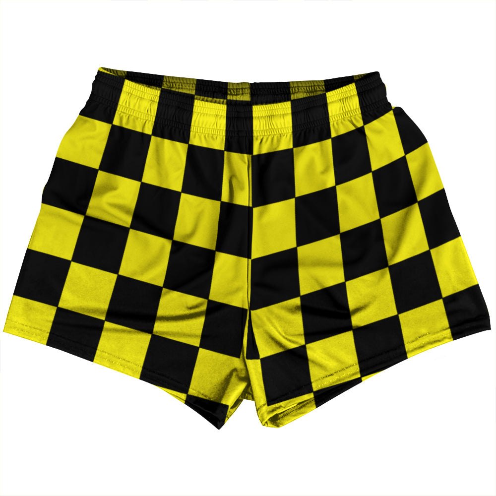 Checkerboard 2.5 Inches Black and Yellow Womens & Girls Sport Shorts End Made In USA