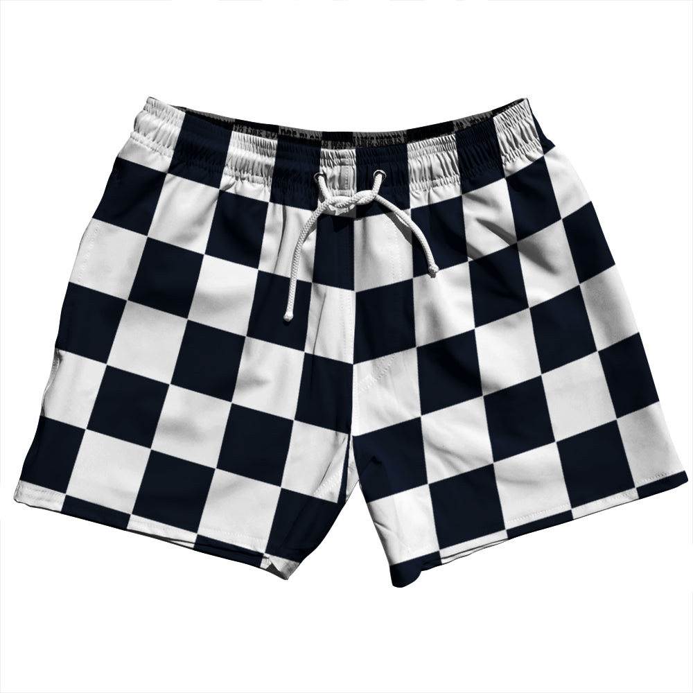• Checkerboard 2.5 Inches Blue Navy Almost Black and White 5" Swim Shorts Made in USA