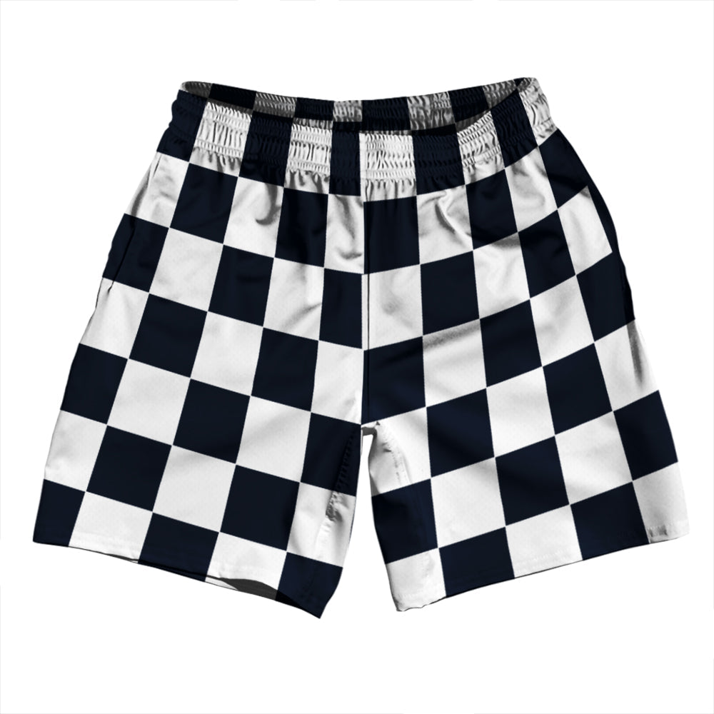 Checkerboard 2.5 Inches Blue Navy Almost Black and White Soccer Shorts Made In USA
