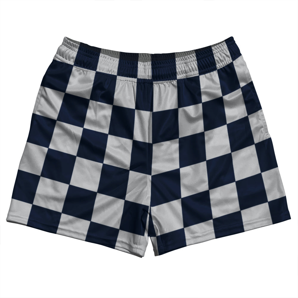 • Checkerboard 2.5 Inches Blue Navy And Grey Medium Rugby Shorts Made In USA