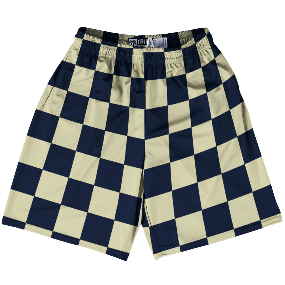 - Checkerboard 2.5 Inches Blue Navy and Vegas Gold Lacrosse Shorts Made In USA