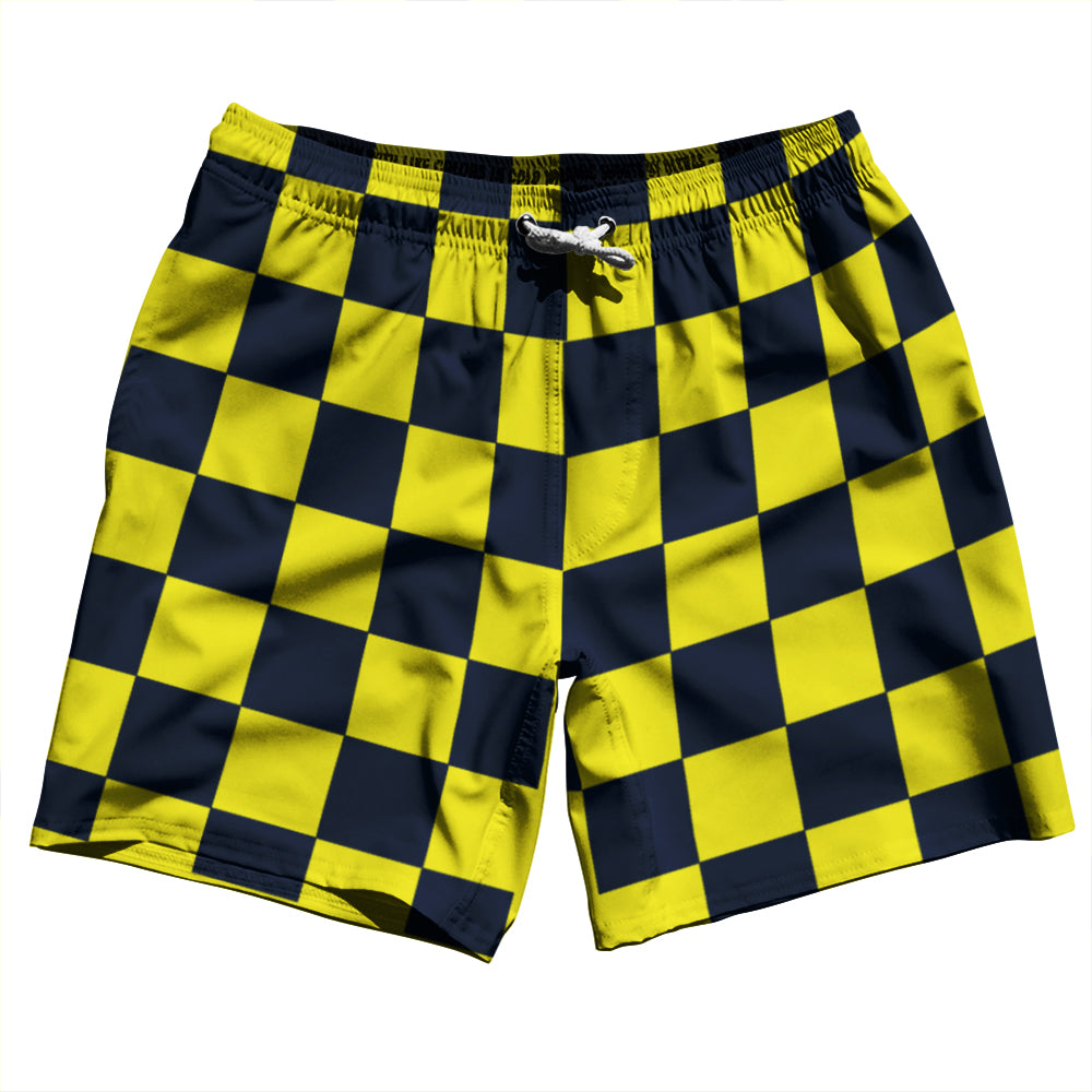 - Checkerboard 2.5 Inches Blue Navy and Yellow Bright Swim Shorts 7" Made in USA