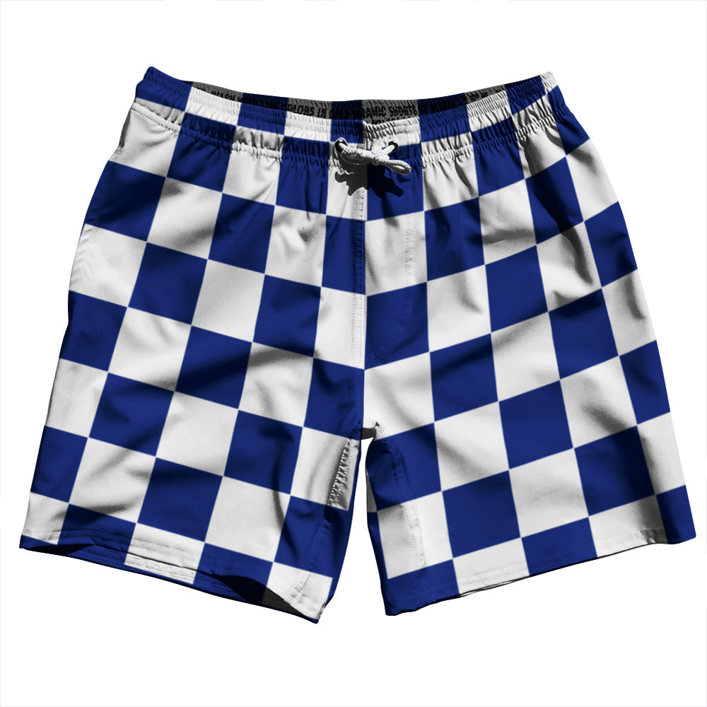 Checkerboard 2.5 Inches Blue Royal and White Swim Shorts 7" Made in USA