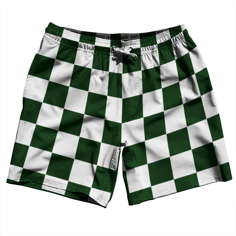 Checkerboard 2.5 Inches Green Forest and White Swim Shorts 7" Made in USA