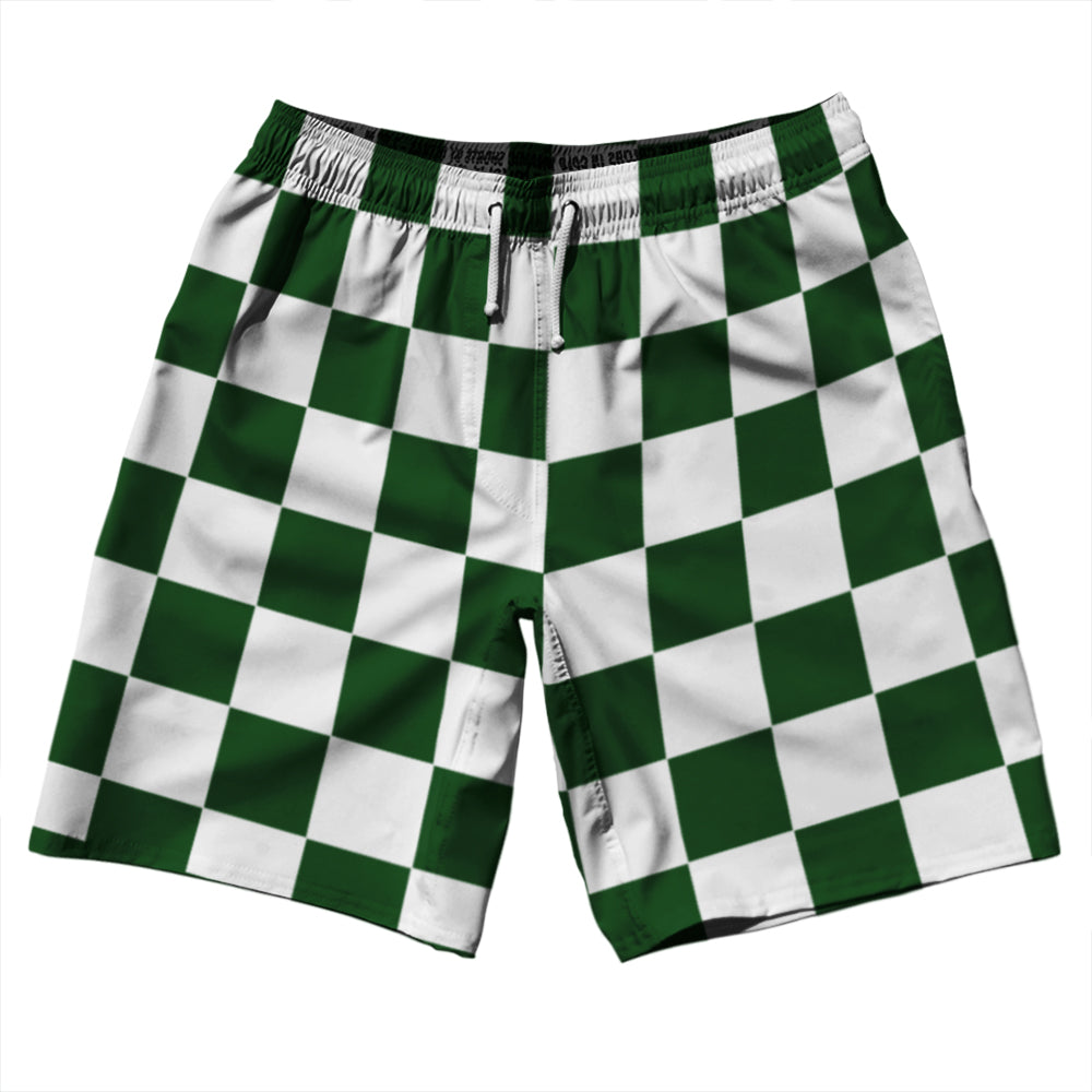 Checkerboard 2.5 Inches Green Hunter and White 10" Swim Shorts Made in USA
