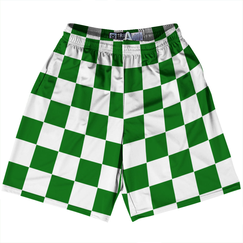 Checkerboard 2.5 Inches Green Kelly and White Lacrosse Shorts Made In USA