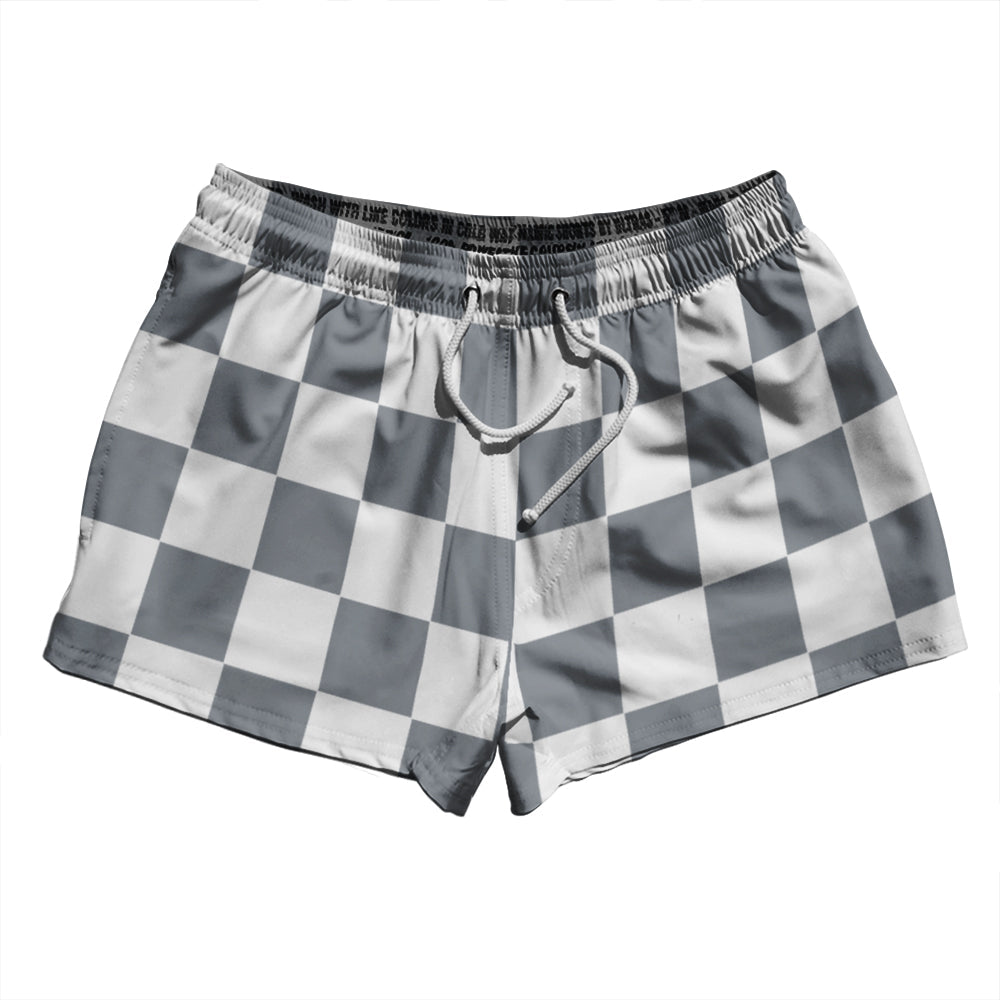 Checkerboard 2.5 Inches Grey Dark and White 2.5" Swim Shorts Made in USA